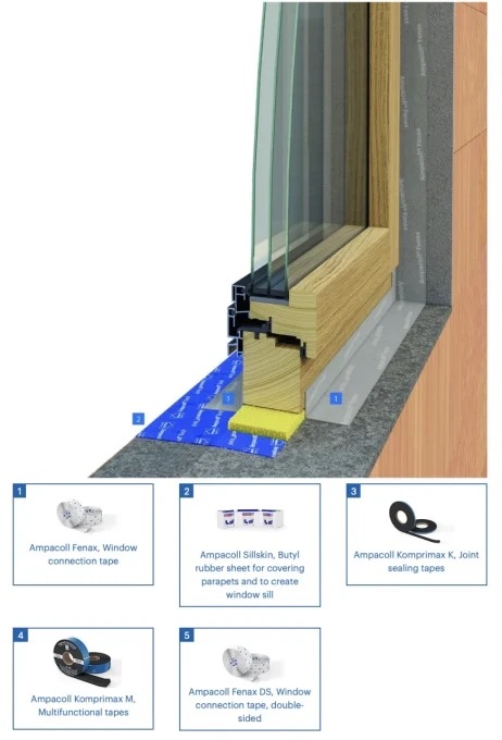 Ampacoll Fenax este o bandă adezivă inovatoare pentru conectarea ferestrelor, concepută pentru etanșarea ușilor și ferestrelor în construcții solide, din lemn și metal după instalare. Oferă o soluție versatilă și eficientă pentru asigurarea etanșeității în jurul deschiderilor.
