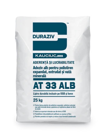 DURAZIV AT 33 Alb, Adeziv pentru polistiren expandat,extrudat si vata bazaltica aditivat cu Kauciuc® 25KG
