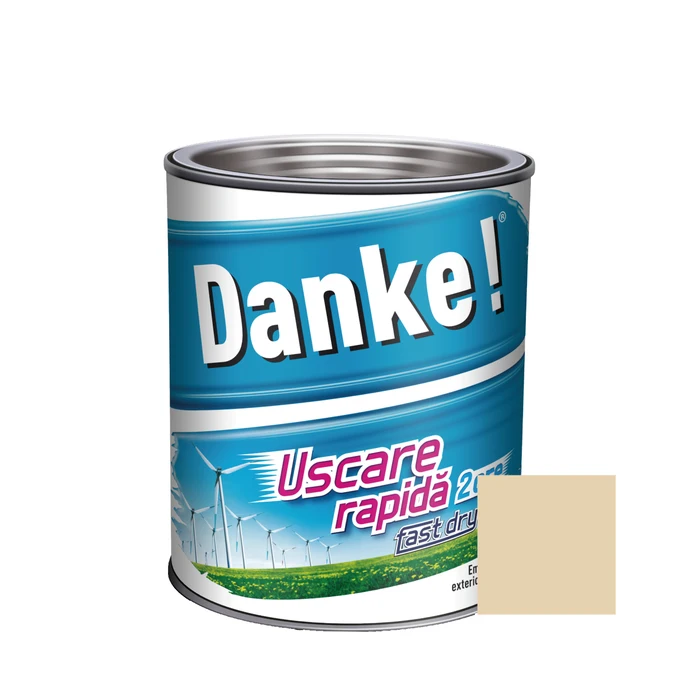 Danke! Uscare Rapida este o vopsea lucioasa avind la baza rasina alchidica, pigmenti, solventi organici, sicativi, aditivi si este utilizata pentru acoperirea si protejarea suprafetelor din metal, lemn, zidarie neutra, conferindu-le acestora un aspect placut. Aceasta este utilizata la interior / exterior pentru acoperirea suprafetelor noi, dar si pentru reacoperirea suprafetelor deja vopsite.