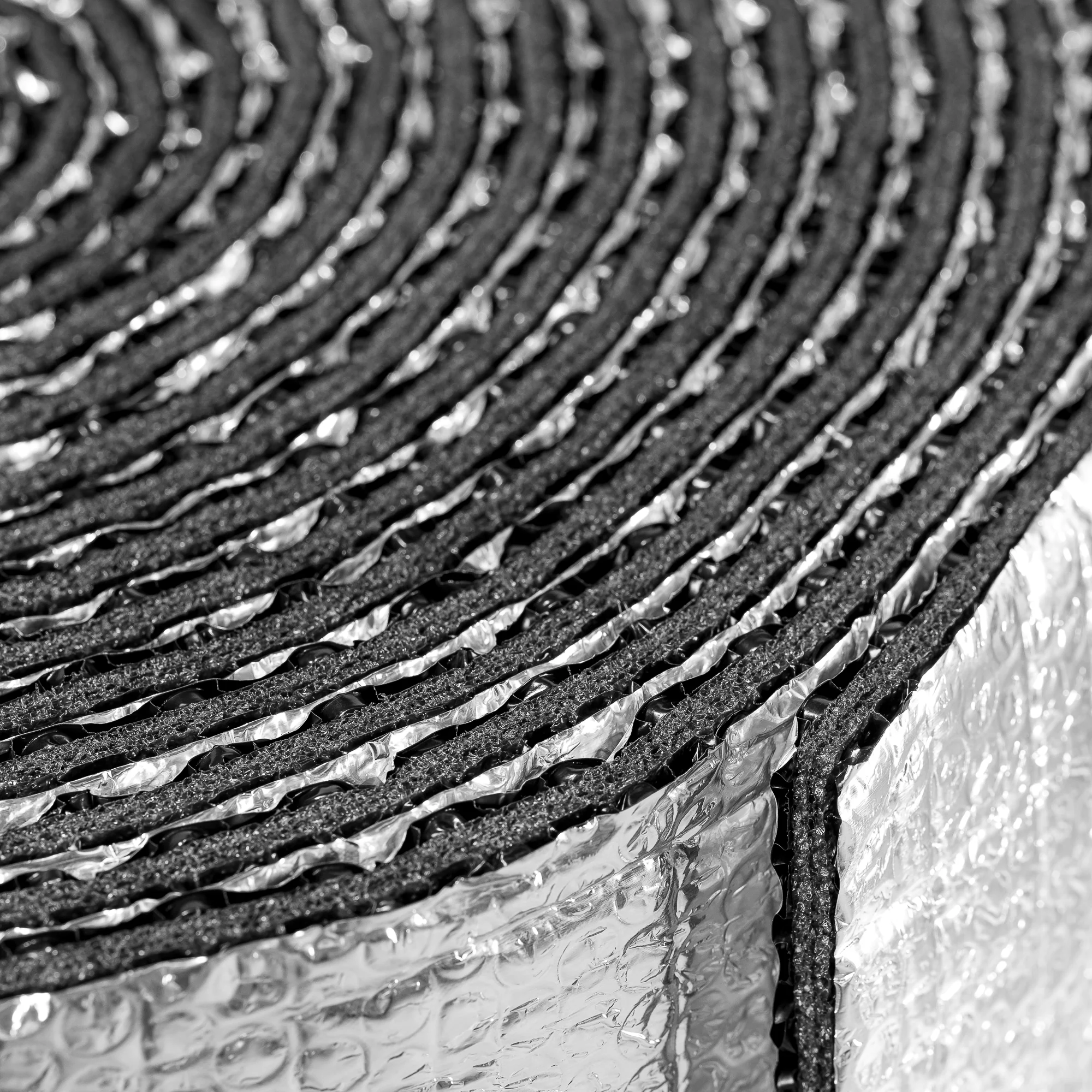 - Compoziție: 5 straturi, care includ două straturi de folie de aluminiu pur, două straturi de folie cu bule de aer și un strat de polietilenă expandată.